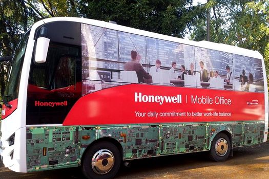 În ceea ce priveşte autobuzul în care angajaţii lucrează în drum spre locul de muncă, acesta aparţine companiei Honeywell, care are o fabrică la Lugoj, în care lucrează aproximativ 800 de persoane, multe dintre acestea făcând naveta din Timişoara. Potrivit reprezentanţilor companiei, Honeywell consideră timpul petrecut pe drum timp de lucru, astfel că transportă angajaţii la locul de muncă gratuit, cu un autobuz în care au acces la Internet, iar în faţa scaunelor au fost montate mese speciale. Astfel, angajaţii îşi petrec în fabrică doar şapte ore pe zi.
