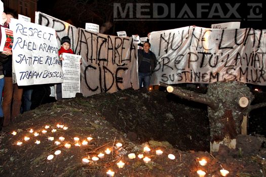 Oamenii au aprins lumânări şi au avut pancarte pe care scria „Solidari cu SMURD”, „Respect pentru SMURD”, „Fatal error 404: Democracy not found”, „Noi pentru SMURD, SMURD pentru noi”, „Raed Arafat suntem alături de tine”, „Respect pentru Raed Arafat, greaţă faţă de Băsescu”, „Nu ne luaţi dreptul la viaţă”, „Raed Arafat un model de urmat, Băsescu un model de…. Unul construieşte de 20 de ani, celălalt dărâmă de circa opt ani”.