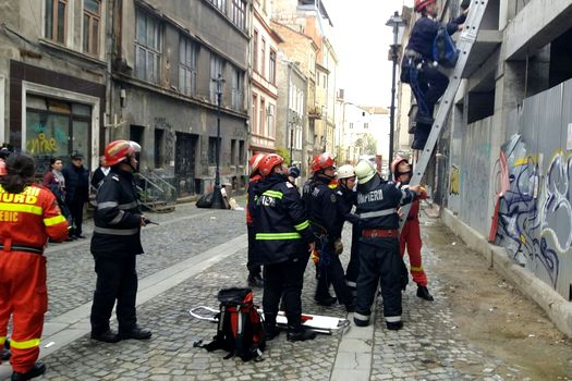În jurul orei 16.00 a fost făcut apelul la 112 de către o persoană care trecea pe lângă imobilul situat pe Calea Victoriei nr.2 şi care ulterior le-a povestit salvatorilor că a fost alarmat de un zgomot puternic. La faţa locului au fost trimise echipe de la Inspectoratul pentru Situaţii de Urgenţă Bucureşti-Ilfov şi de la Poliţia Capitalei.