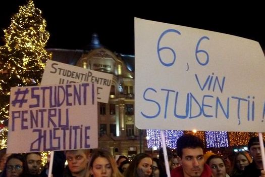 De asemenea, manifestanţii au ţinut în mâini afişe cu mesaje precum “6, 6, vin studenţii”, “Studenţi pentru justiţie” sau “Nu corupţiei”.