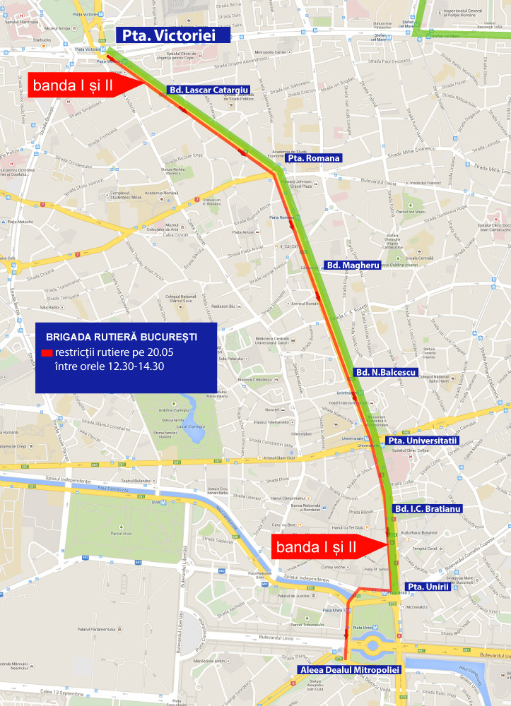 Deplasarea participanţilor se va face pe banda I şi II de circulaţie, potrivit Brigăzii Rutiere de Circulaţie.