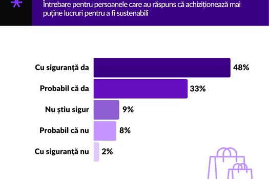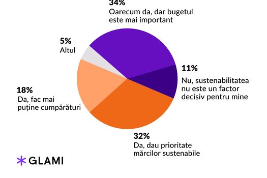 Moda sustenabilă nu este neglijată de români, care încearcă să adopte un comportament prietenos cu mediul înconjurător. Cu toate acestea, 34% dintre respondenţi au recunoscut că încearcă să practice sustenabilitatea, însă bugetul alocat cumpărăturilor de haine şi încălţăminte joacă un rol decisiv în alegerile făcute într-un final.