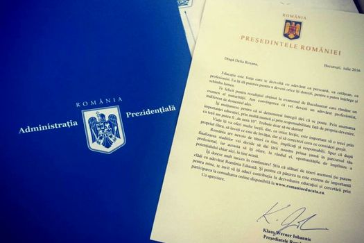 ”Te felicit pentru rezultatul obţinut la examenul de Bacalaureat care rămâne un examen al maturităţii. Am convingerea că vei deveni un adevărat profesionist, indiferent de domeniul ales. România are nevoie de tineri ca tine, implicaţi şi responsabili. Sper că după finalizarea studiilor vei decide să dai ţării noastre prima şansă în parcursul tău profesional, iar aceasta să îţi ofere, la rândul ei, oportunităţile de împlinire a potenţialului chiar aici, la tine acasă”, i-a transmis tinerei Klaus Iohannis.