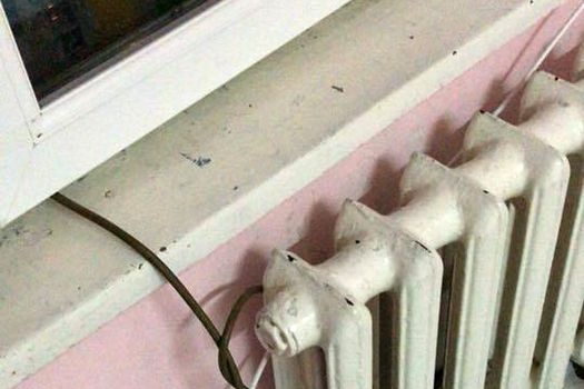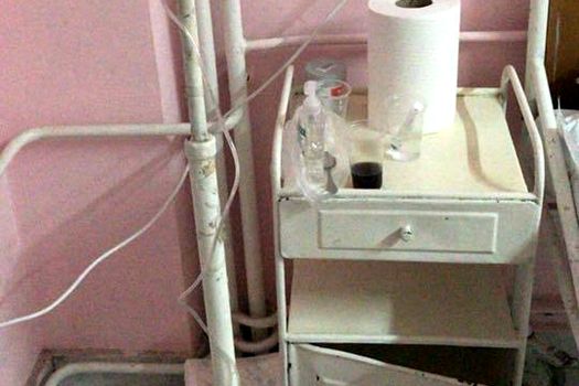 În pozele ataşate postării, apare, pe lângă imagini dezolante din camera de spital, un furtun subţine introdus pe geam în salon.