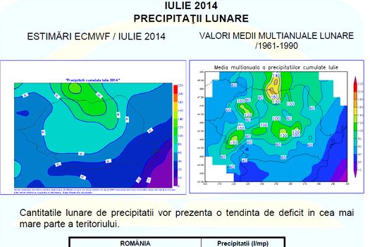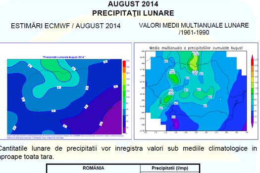 Cantităţile lunare de precipitaţii vor înregistra valori sub mediile climatologice în aproape toata ţara.