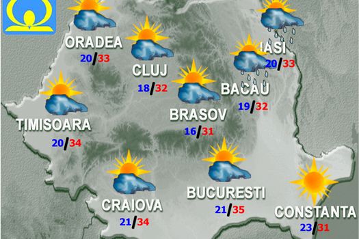 Temperaturile maxime se vor încadra între 27 şi 35 de grade, iar cele minime vor fi cuprinse între 14 şi 23 de grade.