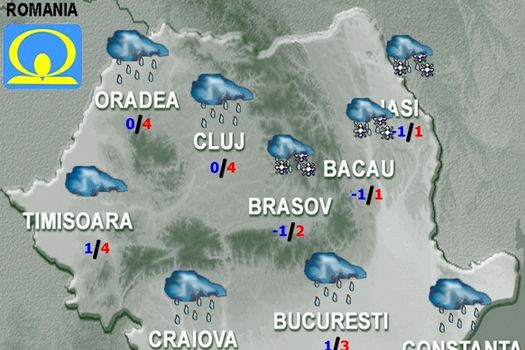 Vremea se va ameliora sub aspectul precipitaţiilor, dar noaptea va fi mai rece decât precedentele. Cerul va fi mai mult noros în jumătatea nordică a teritoriului, unde pe arii restrânse vor fi precipitaţii slabe, îndeosebi lapoviţă şi ninsoare, în timp ce în restul ţării înnorările vor fi temporare, iar trecător în sudul extrem şi în sud-est vor fi posibile precipitaţii izolate, predominant sub formă de ploaie, ce vor favoriza depunerea de polei.