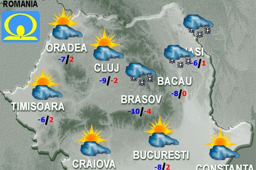 Cerul va fi temporar noros şi, mai ales ziua, va ninge local în Moldova, Transilvania şi zona de munte. În restul teritoriului, ninsorile se vor semnala cu totul izolat. Vântul va avea intensificări în nord-est, centru şi sud-vest, iar la munte va sufla tare, viscolind şi spulberând ninsoarea. Rafale ale vântului se vor semnala temporar şi în restul zonelor, dar pe arii mai restrânse şi la cote mai reduse.