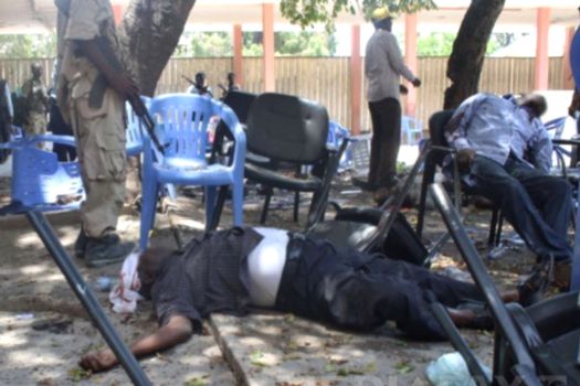 Potrivit BBC, care notează că numărul morţilor ar fi de 10, Teatrul Naţional, închis la începutul anilor ’90 din cauza războiului civil din această ţară şi redeschis luna trecută, găzduia un eveniment aniversar al televiziunii naţionale somaleze, la care participau mai multe personalităţi, printre care şi premierul Abdiweli Mohamed Ali. Acesta din urmă a scăpat nevătămat în urma atentatului.