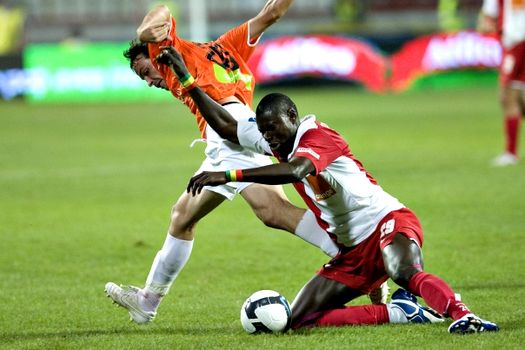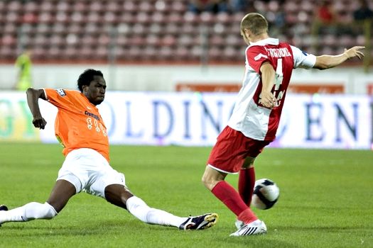 Min. 68: Lucian Goian a blocat in extremis şutul lui Traore din mijlocul careului, în urma unei acţiuni prelungite de atac a oaspeţilor.