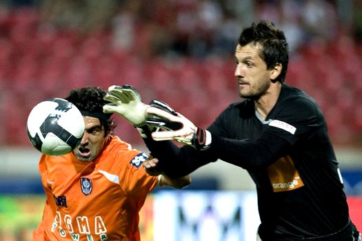 Min. 10: Adrian Cristea a executat puternic o lovitură liberă, Nuno Claro nu a putut să reţină balonul, care s-a dus lateral stânga, de unde Marius Niculae a reluat peste poartă, de la aproximativ opt metri.