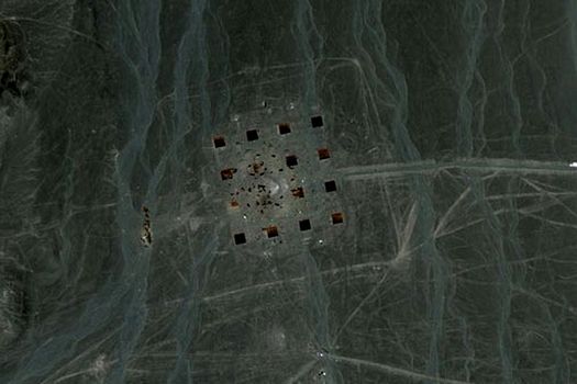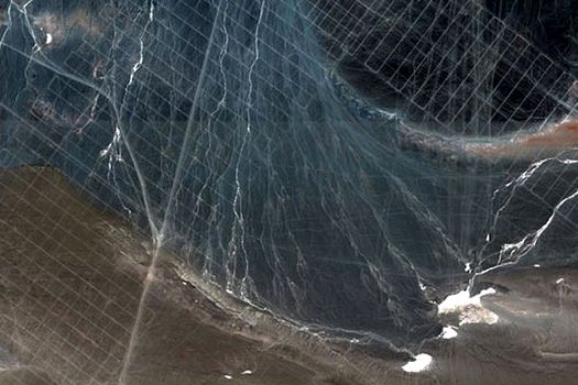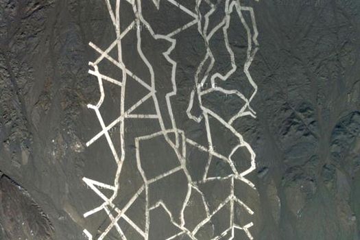 În două dintre imaginile disponibile pe Google Earth apar linii reflectorizante, strălucitoare, lungi de peste un kilometru şi jumătate, intersectate între ele şi vizibile din spaţiu, care aduc aminte de geoglifele liniare de pe platourile de la Nazca.
