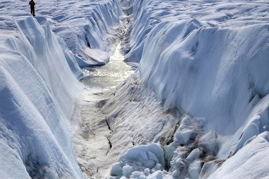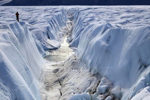 Viteza de topire a gheţarilor din Groenlanda afectează direct nivelul apelor oceanice, care se ridică în prezent cu trei mililmetri pe an.