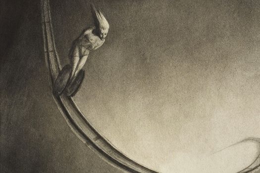 Alfred Kubin (1877-1959), grafician şi scriitor austriac, reprezentant al simbolismului şi al expresionismului; a suferit de mai multe căderi psihice şi încercări de suicid, inclusive una pe mormântul mamei sale. Interesat de macabru, desenele sale timpurii includ monştri, diformităţi, chipuri desfigurate, corpuri umane în descompunere – fantasme tulburătoare şi nuanţe întunecate. A ilustrat operele lui Edgar Allan Poe, E.T.A. Hoffmann şi Dostoievski.