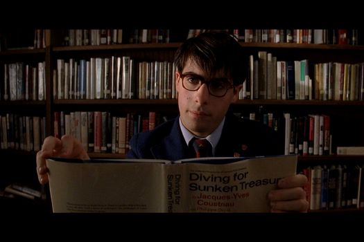 Max se va împrieteni cu un ştab de 50 de ani. Hermann Blume e un mare mahăr, cinic, în plină “middle-life crisis”. Bea whisky cu gheaţă în boxerii hawaieni, în şezlong, lângă piscină, în timp ce o vede pe nevastă-sa cum face ochii dulci unor tipi. Blume plonjează în piscină şi soundtrack-ul pe secvenţa subacvatică din bazin se petrece pe melodia “Nothin’ in the World Can Stop Me Worryin’ ‘bout the Girl” de la The Kinks. Mogulul Max e în poziţie fetală în piscină, ca un nene care îşi doreşte să apese “pause” pe telecomanda ce controlează timpu’ vieţii. Max, puştiul “over-achiever” e grangur-wannabe. Beleaua e că el şi Blume (jucat de Bill Murray, cu meclă saturniană & burtică de bărbat scăpătat, ce trăieşte în huzur) se vor amoreza de o tanti profă de română de la liceul Rushmore, Rosemary Cross, matură emotional, cu glas de mămică înţeleaptă care trebuie să-şi potolească odorii, pe Max & Hermann.