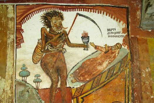 Un manuscris din anul 1780, păstrat în colecţiile Bibliotecii Academiei Române din Bucureşti, propune aceeaşi juxtapunere: „… că acesta iaste obiceiul morţii, că vedeţi pre moarte cum o zugrăvesc zugravii şi nu o fac cu arme, ca pe alţi sfinţi, ci cu coasă trăgându-să după dânsa ca să cosască pe cei de pre pământ precum vedem că coasa taie rând.”