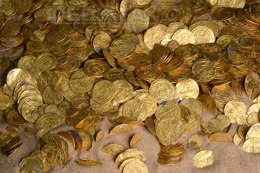 Oamenii de ştiinţă presupun că monedele, care au fost dezgropate de sub nisipul de pe fundul mării de furtunile puternice din această iarnă, s-au scufundat odată cu o corabie în apropiere de străvechiul port roman Caesarea, în partea de est a Mării Mediterane.