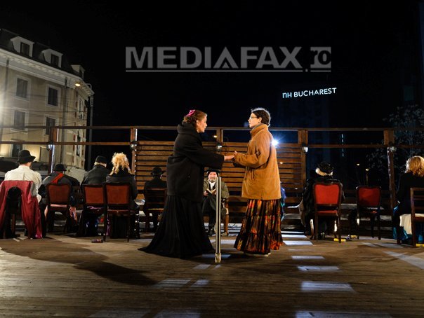 Muzica şi dansul au fost elementele de bază în spectacolul susţinut în faţa teatrului, iar jocul actoricesc i-a făcut pe cei prezenţi să ignore frigul de afară, să se bucure alături de artişti şi să aplaude. Glume de-a dreptul înduioşătoare au „condimentat” spectacolul şi au adus zâmbete pe buzele spectatorilor. Nu au lipsit nici replicile care au făcut, subtil, trimitere la situaţia în care se află teatrul: „E o căldură aici de îngheaţă apa/ Să vezi cum e în teatru”.