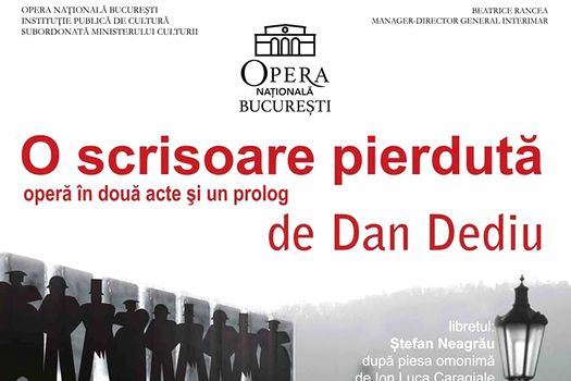 Inspirată de celebra piesă de teatru a lui Ion Luca Caragiale, opera „O scrisoare pierdută” reprezintă o transpunere muzicală a comediei. Dirijorul spectacolului este maestrul Tiberiu Soare, regia şi libretul îi aparţin lui Ştefan Neagrău, scenografia Viorica Petrovici.