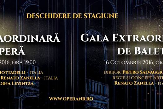 Opera Naţională Bucureşti deschide stagiunea 2016–2017 cu două spectacole–eveniment.