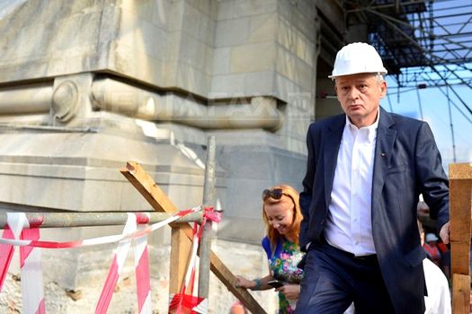 Primarul Capitalei a precizat că lucrările, care au fost începute în luna ianuarie, sunt finalizate 25 la sută, prioritară fiind consolidarea monumentului. Oprescu a adăugat că municipalitatea vrea realizarea unui pasaj pietonal care să faciliteze accesul pietonilor la monument.