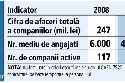 Companiile care închiriază forţă de muncă în regim temporar aveau împreună anul trecut 44.500 de salariaţi, faţă de numai 6.000 de salariaţi în 2008, potrivit unei analize efectuate de