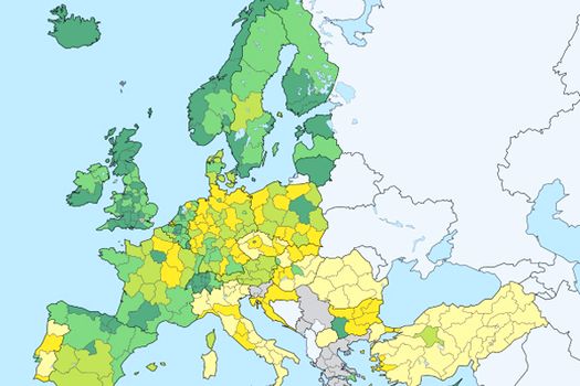 Datele sunt sintetizate într-o hartă: cu cât zonele sunt mai verzi, cu atât mai bogate în absolvenţi sunt, cu cât sunt mai galbene, cu atât mai puţini. Nu este greu sa remarcăm „deşertul” din România şi uniformitatea acestuia, care contrastează cu restul zonelor preponderea îngălbenite – Turcia, Ungaria sau Italia, dar care mai au spărturi cât de cât mai colorate.