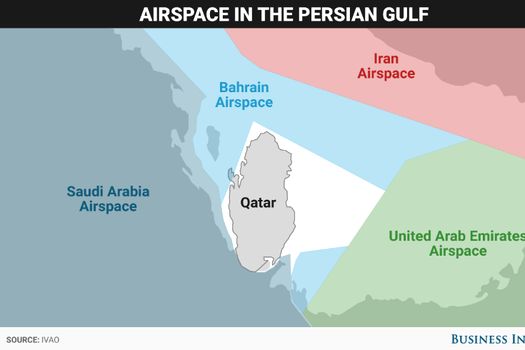 În timp ce pierderea accesului la spaţiul aerian din Arabia Saudită ar forţa Qatar Airways să întreprindă manevre costisitoare pentru a redirecţiona zborurile sale spre şi din Africa, pierderea accesului la spaţiul aerian din Bahrain ar putea fi catastrofală, deoarece această ţara înconjoară în mare parte statul Qatar.