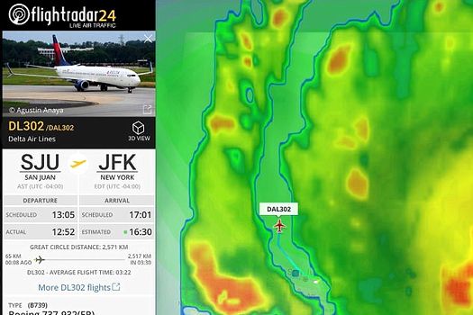 Fotografia de mai jos arată zborul Delta 431 în timp ce se îndreaptă spre Puerto Rico, care pare acoperit de furtuna torenţială. Deşi avionul a zburat direct în furtună, nimeni nu a fost rănit şi avionul a aterizat în siguranţă.