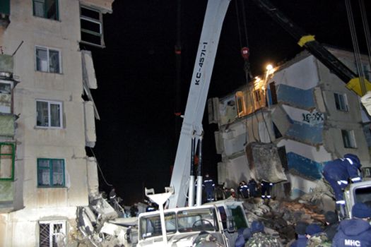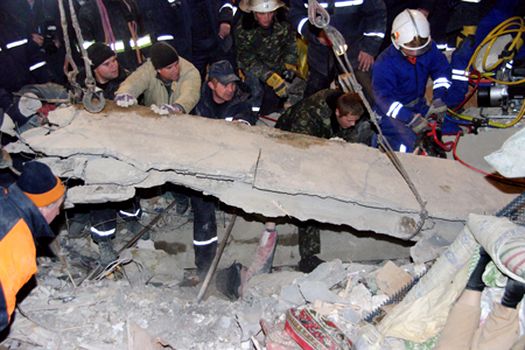 "Potrivit informaţiilor preliminare, în subsolul clădirii se afla un atelier unde se foloseau materiale explozive fără autorizaţie", a declarat joi premierul Iulia Timoşenko.