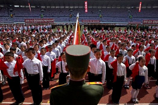 Mii de oameni s-au adunat, joi, pe stadionul Kim II Sung din capitala Coreei de Nord pentru a-i urmări pe aceşti tineri cum jură credinţă Uniunii Copiilor Nord-coreeni (KCU), o organizaţie politică pentru copii cu vârste cuprinse între 7 şi 13 ani care jură să înveţe cum să-şi apere naţiunea.