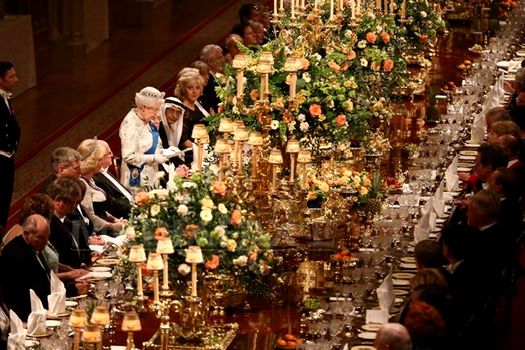 Suverana a salutat prezenţa preşedintelui Higgins şi şi-a exprimat speranţa faţă de un „viitor mai stabil” între cele două ţări. Prezenţa lui Martin McGuinness la palatul Windsor, la trei ani după ce a refuzat să participe la Dublin la o cină organizată în onoarea reginei, a fost considerată sâmbătă de către Gerry Adams, preşedintele Sinn Fein, principalul partid al comunităţii catolice, drept „un nou exemplu de angajament al Sinn Fein în favoarea unui viitor fondat pe toleranţă şi egalitate”.