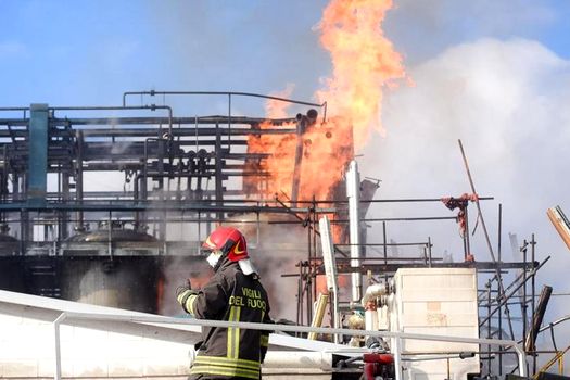 Pompierii italieni depun eforturi pentru stingerea incendiului şi încearcă să afle circumstanţele producerii accidentului industrial.