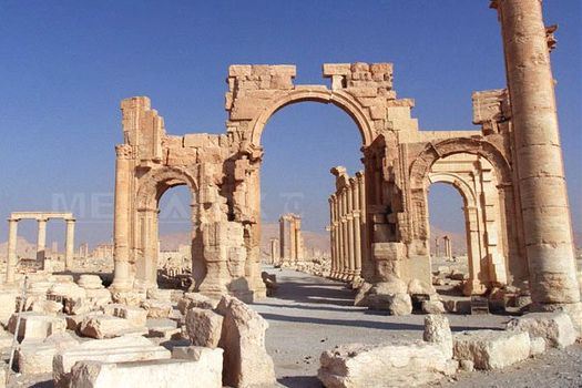 Observatorul sirian pentru Drepturile Omului a transmis că militanţii SI au aruncat în aer arcul, dar au lăsat colonadele în picioare.