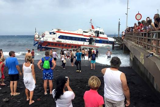 Din cauza valurilor mari şi rafalelor puternice de vânt, ambarcaţiunea a lovit un dig în Portul Stromboli şi s-a scunfundat parţial.