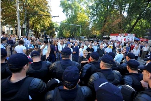 Manifestanţii au dorit să forţeze cordonul poliţiei iar „forţele de ordine au ripostat imediat, atât prin forţă, cât şi prin gaze lacrimogene”, informează presa molodeană.