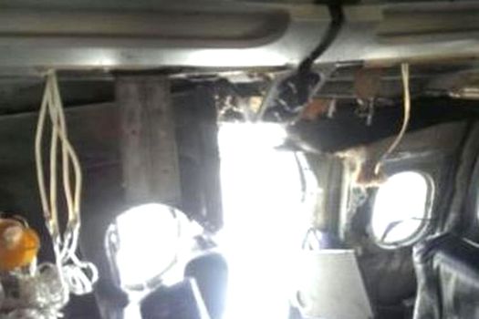 Autorităţile susţin că un motor al aeronavei ar fi luat foc, însă imaginile relevă o gaură relativ mare, provocată din interior spre exterior, în partea dreaptă a cabinei avionului.