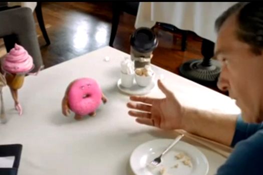 Din acel moment începe o ceartă între Antonio Banderas şi diverse alimente, actorul spunând „Uite, prânzul s-a terminat, aşa că asta s-a terminat”. Alimentele, vizibil iritate de decizia lui Banderas, par dezamăgite şi îl întreabă pe acesta „Deci, asta e o despărţire?”.