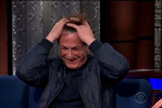 Colbert l-a întrebat pe invitatul său dacă încă resimte efectele medicamentului, iar Penn a spus: „Puţin”.