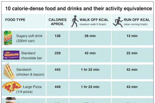 De exemplu, dacă mănânci un sfert dintr-o pizza mare, asta înseamnă 449 de calorii, pentru care ai nevoie de o plimbare de 1 oră şi 23 de minute sau de 43 de minute de alergat.