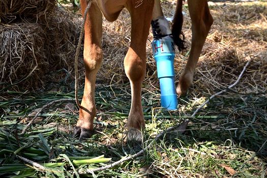 Simon a ajuns la fundaţie în ianuarie după o rană la picior. Văcuţa s-a rănit când a rămas prinsă în viţă de vie. În final, piciorul a trebuit amputat şi Simon a primit o proteză.