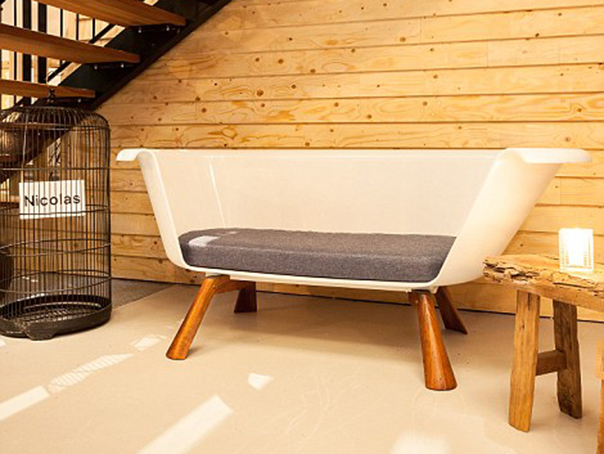 Într-o altă cameră a fost amplasată o canapea construită dintr-o cadă, în timp ce altă încăpere, în formă de căsuţă colorată, dispune de televizor şi scaune 2D.