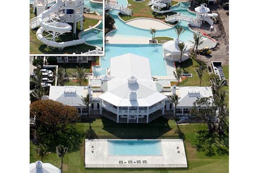 Imensul parc acvatic include un tobogan în spirală şi un râu artificial al cărui curent lent îi conduce pe vizitatori în jurul proprietăţii cântăreţei.