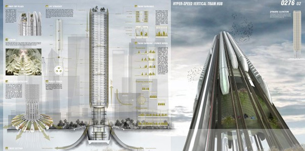 „Hyper Speer Vertical Train Hub îşi propune să rezolve provocările inevitabile cu care se vor confrunta marile oraşe până în 2075„, spun arhitecţii, „şi oferă o soluţie realizabilă şi sustenabilă pentru viitorul transportului„. Proiectul ar reduce impactul pe care îl au staţiile de metrou tradiţionale asupra spaţiului şi aglomeraţiei din metropolele mondiale, ar scădea nivelul poluării şi ar creşte eficienţa reţelelor de transport în comun.