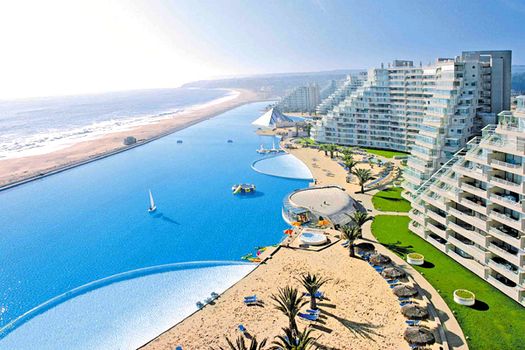 Construită în staţiunea turistică San Alfonso del Mar din Chile şi amplasată chiar pe malul Oceanului Pacific, Laguna de Cristal este cea mai mare piscină din lume.