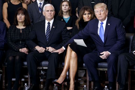 Donald Trump îl atinge pe picior pe Mike Pence şi, cu toate că gestul pare sincer, fiind o atingere prietenească, de susţinere şi afecţiune, internauţii nu s-au putut abţine de la a face glume pe seama imaginii memorabile.