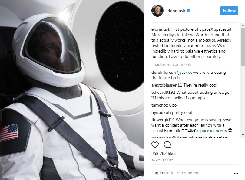 Costumul creat de Musk chiar funcţionează, acesta fiind testat într-o cameră cu dublă presiune. Costumul în sine este foarte alb şi foarte spaţios, iar Musk recunoaşte că a fost „incredibil de greu” să echilibreze aspectul costumului cu abilităţile sale menite să îi ajute pe astronauţi.