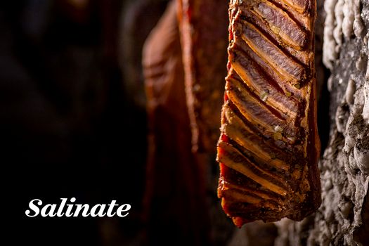 Întreaga gamă de produse Salinate este realizată din carne de porc de cea mai bună calitate, provenind din gospodăriile oamenilor din zonă – preponderent rasele de porc Bazna şi Marele Alb. Gama conţine patru sortimente: pulpă, cotlet, piept şi ceafă, care sunt maturate iniţial în saramură naturală şi atent condimentate cu un amestec de condimente naturale. Carnea se odihneşte apoi pentru 25 de zile în micro-climatul natural al Salinei Turda, în condiţii ideale de umiditate şi temperatură, unde capătă un gust desăvârşit.