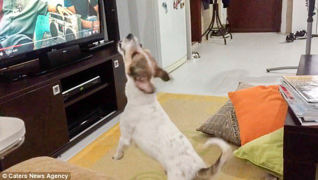 Într-o serie de imagini, patrupedul este surprins dând din coadă şi privind transfigurat videoclipul melodiei, ce rulează pe televizorul săpânului său, Emre.