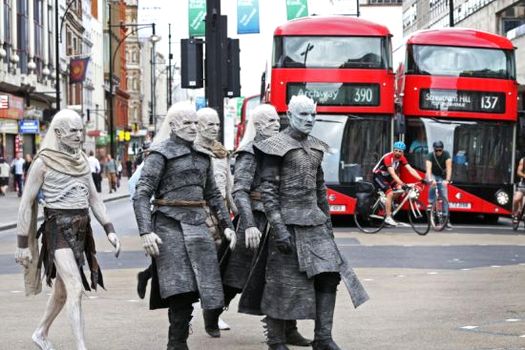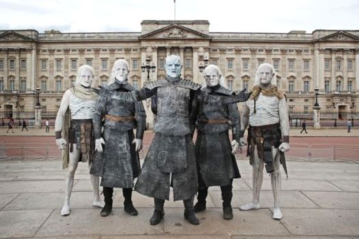Cinci actori au fost transformaţi în Umblători Albi pentru a crea o apariţie de senzaţie, utilizând elemente prostetice special create, o echipă de stilişti şi artişti specializaţi în pictură corporală pentru a crea o imagine extrem de realistă şi profesionistă, după calapodul respectivelor personaje. Pentru realizarea costumelor a fost nevoie de 8 săptămâni, iar fiecare actor a fost machiat timp de 4 ore înainte de a-şi face apariţia pe străzile din Londra.